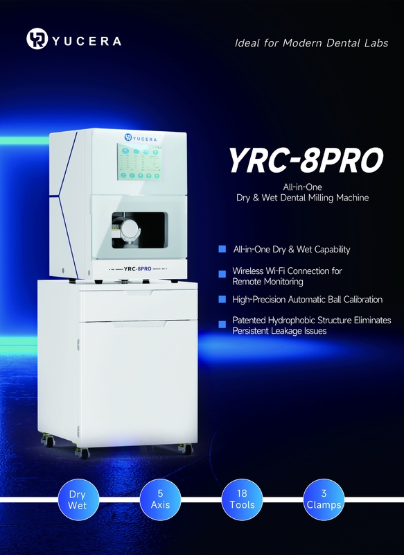 The YRC-8PRO is a compact dental milling machine with integrated dry and wet modes, compatible with zirconia, lithium disilicate, and titanium discs. Designed for both chairside restorations and high-efficiency lab workflows, it delivers reliable performance and seamless CAD/CAM integration in a single unit.